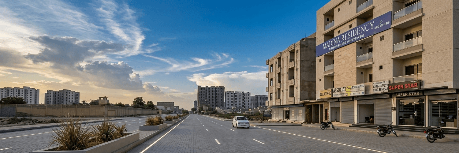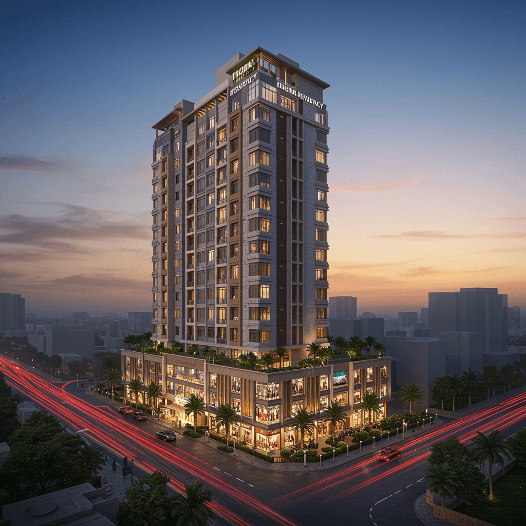 Madina Residency is a distinguished residential and commercial landmark situated in the heart of Karachi a destination designed for those who seek a blend of modern elegance and urban convenience. This project stands as a testament to sophisticated architecture, offering impeccably planned apartment layouts and premium retail spaces that cater to an uncompromising standard of living.